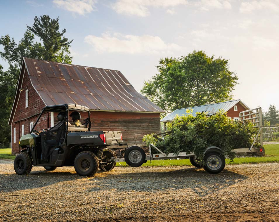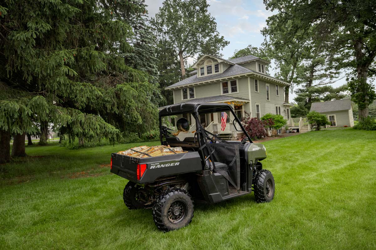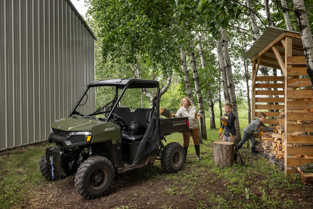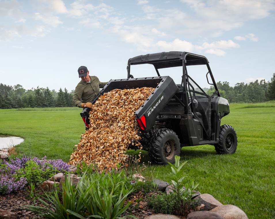 Ahorra tiempo y energía en las tareas del hogar gracias a la caja de descarga, la capacidad de remolque y el winch de fábrica del RANGER 500.
